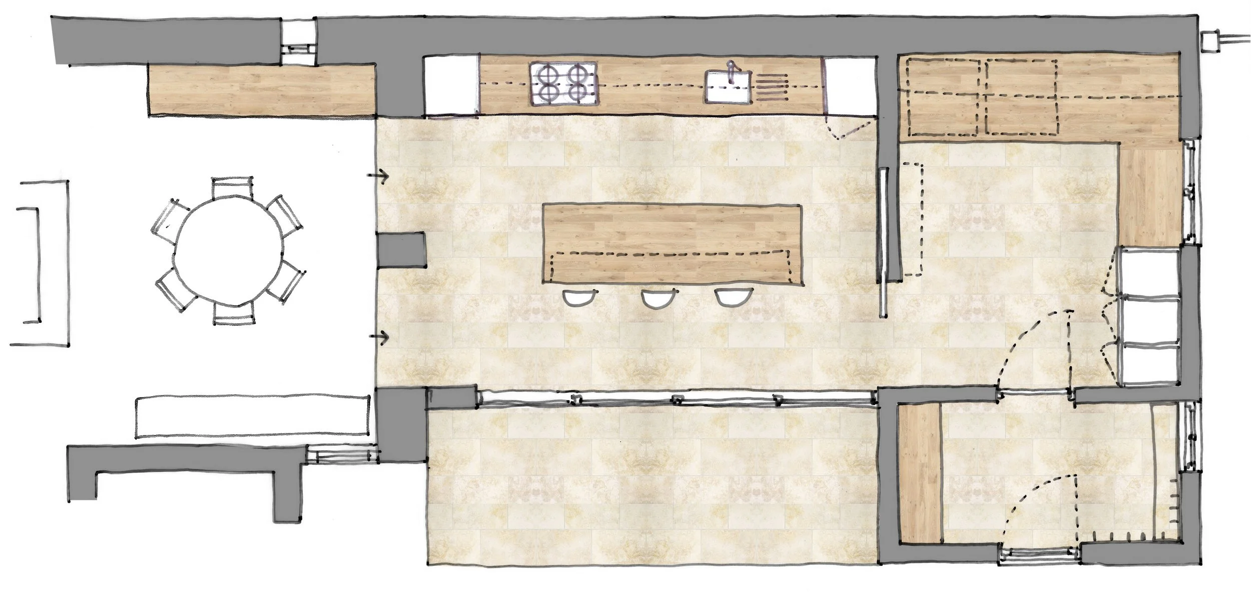 The volume and materials of the new extension contrast with the existing whilst simultaneously being complementary.